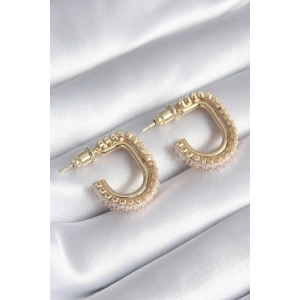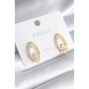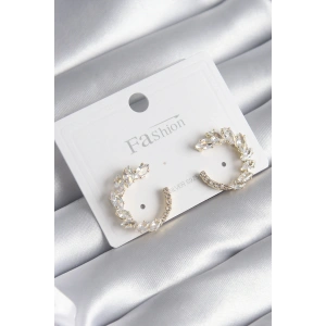 Pirinç Gold Renk Zirkon Taşlı Kadın Küpe