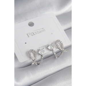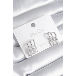 Pirinç Gümüş Renk 3'lü Sallantı Zirkon Taşlı Küpe