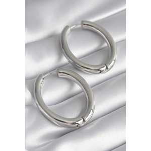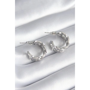 Pirinç Gümüş Renk Halka Model Kadın Küpe