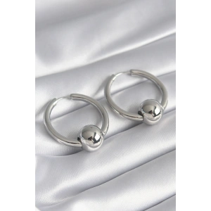 Pirinç Gümüş Renk Halka Top Model Kadın Küpe