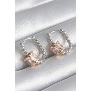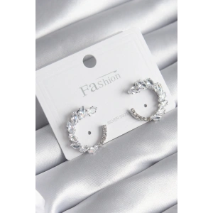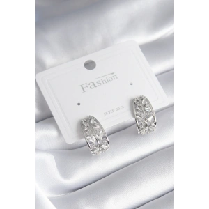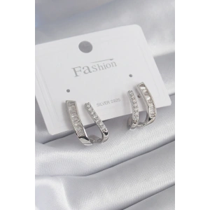 Pirinç Gümüş Renk Zirkon Taşlı Kadın Küpe