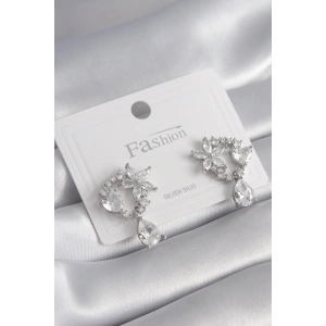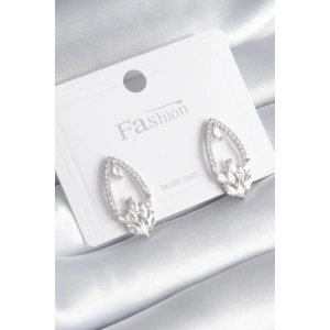 Pirinç Gümüş Renk Zirkon Taşlı Çiçek Model Sallantı Detay Kadın Küpe