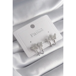 Pirinç Gümüş Renk Zirkon Taşlı Kelebek Model Kadın Küpe