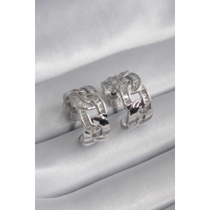 Pirinç Gümüş Renk Zirkon Taşlı Zincir Model Kadın Küpe