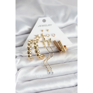 Pirinç Gold Renk 6 Çiftli Kadın Küpe Seti