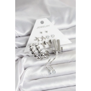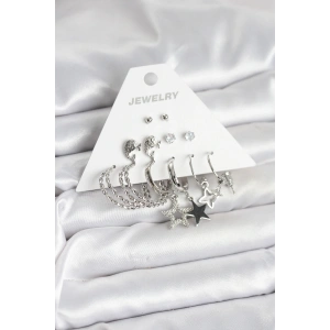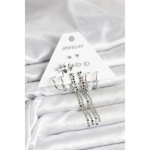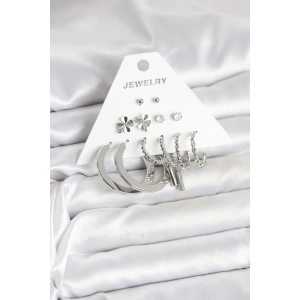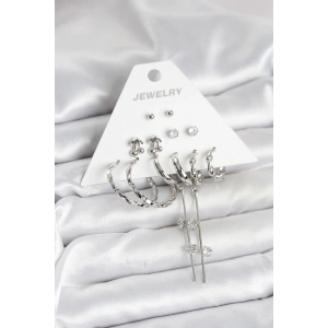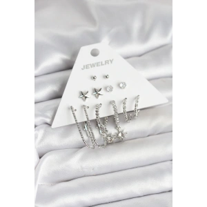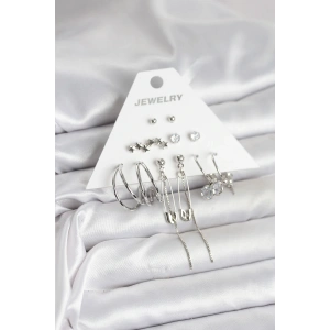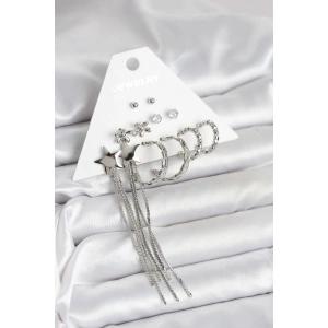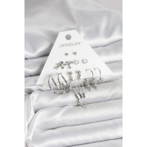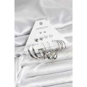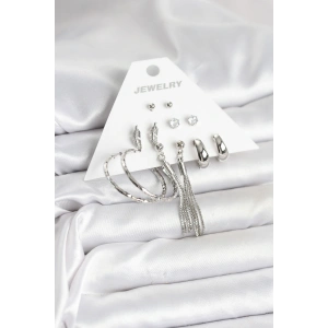 Pirinç Gümüş Renk 6'lı Kadın Küpe Seti