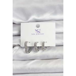 Pirinç Gümüş Renk Küpe Seti 6'lı
