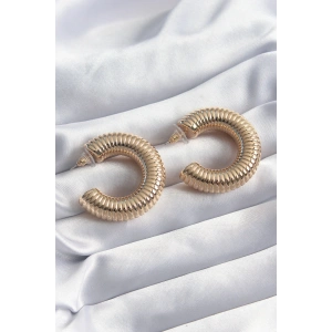 Pirinç Gold Renk İşleme Detay Halka Model Kadın Küpe