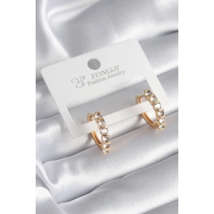 Pirinç Gold Renk Zirkon Taşlı Halka Model Kadın Küpe
