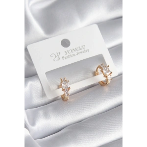 Pirinç Gold Renk Zirkon Taşlı Kadın Küpe