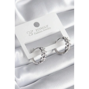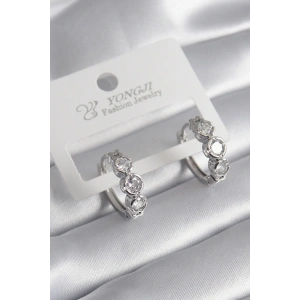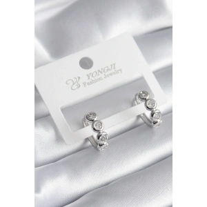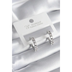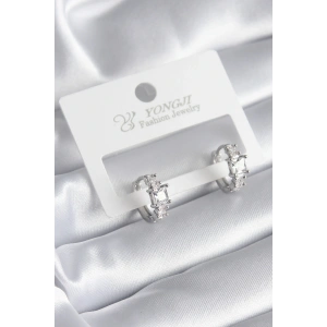 Pirinç Gümüş Renk Zirkon Taşlı Halka Model Kadın Küpe