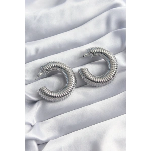 Pirinç Gümüş Renk İşleme Halka Model Kadın Küpe