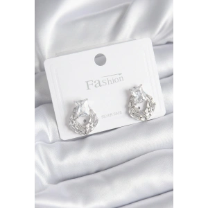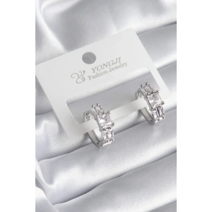 Pirinç Gümüş Renk Zirkon Taşlı Kadın Küpe