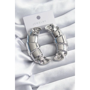 Pirinç Gümüş Renk Kruvasan Model Kadın Küpe