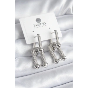 Pirinç Gümüş Renk Zirkon Taşlı Model VIP Seri Kadın Küpe