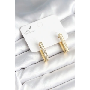 Kaburga Model Zirkon Taşlı Pirinç Kadın Küpe