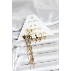 Gold Renk Yıldızlı Set 6 Çift Kadın Küpe Seti