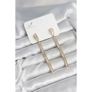 Kutup Yıldızı Pirinç Gold Renk Zirkon Taşlı Kadın Küpe