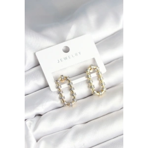 Mineli Karışık Renkli Gold Pirinç Kadın Küpe