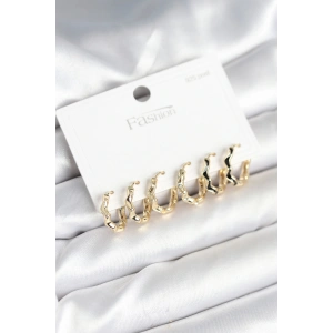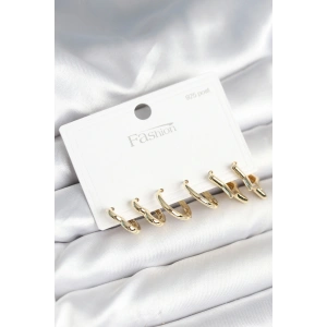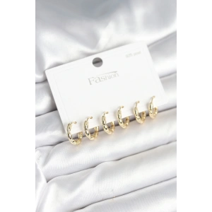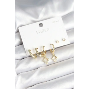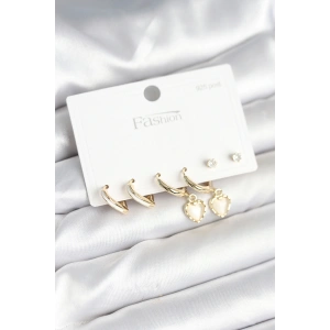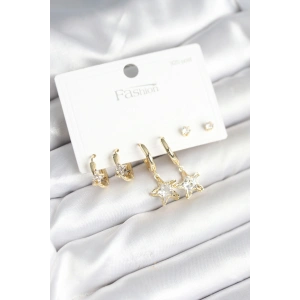 Pirinç Gold Renk Kalp Yıldız ve Halka Model 925 Ayar Gümüş Çivili Kadın Küpe Seti
