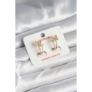 Pirinç Gold Renk Zirkon Taşlı Kelebek Model Kadın Küpe