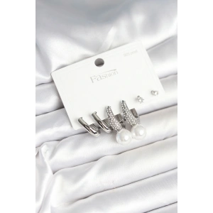 Pirinç Gümüş Renk İncili 925 Ayar Gümüş Çivi Kadın Küpe Seti