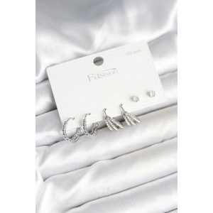 Pirinç Gümüş Renk Zirkon Taşlı 925 Gümüş Çivili Kadın Küpe Seti