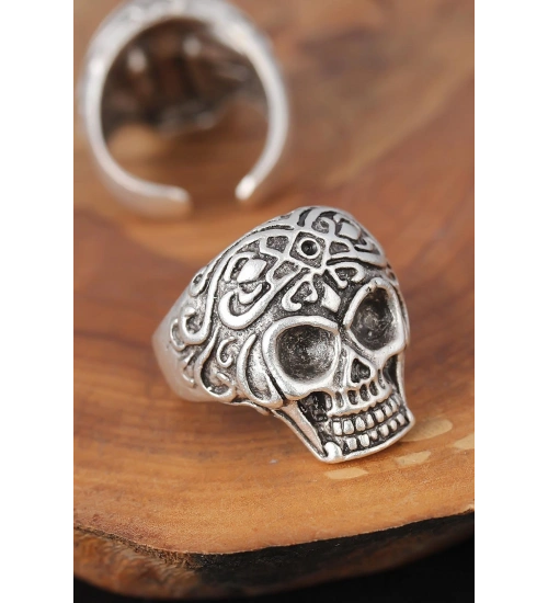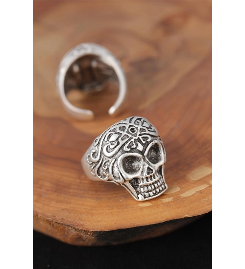Trend beyler için Kuru Kafalı Gümüş Renk Erkek Yüzük modeli şık bir tercih olacak.