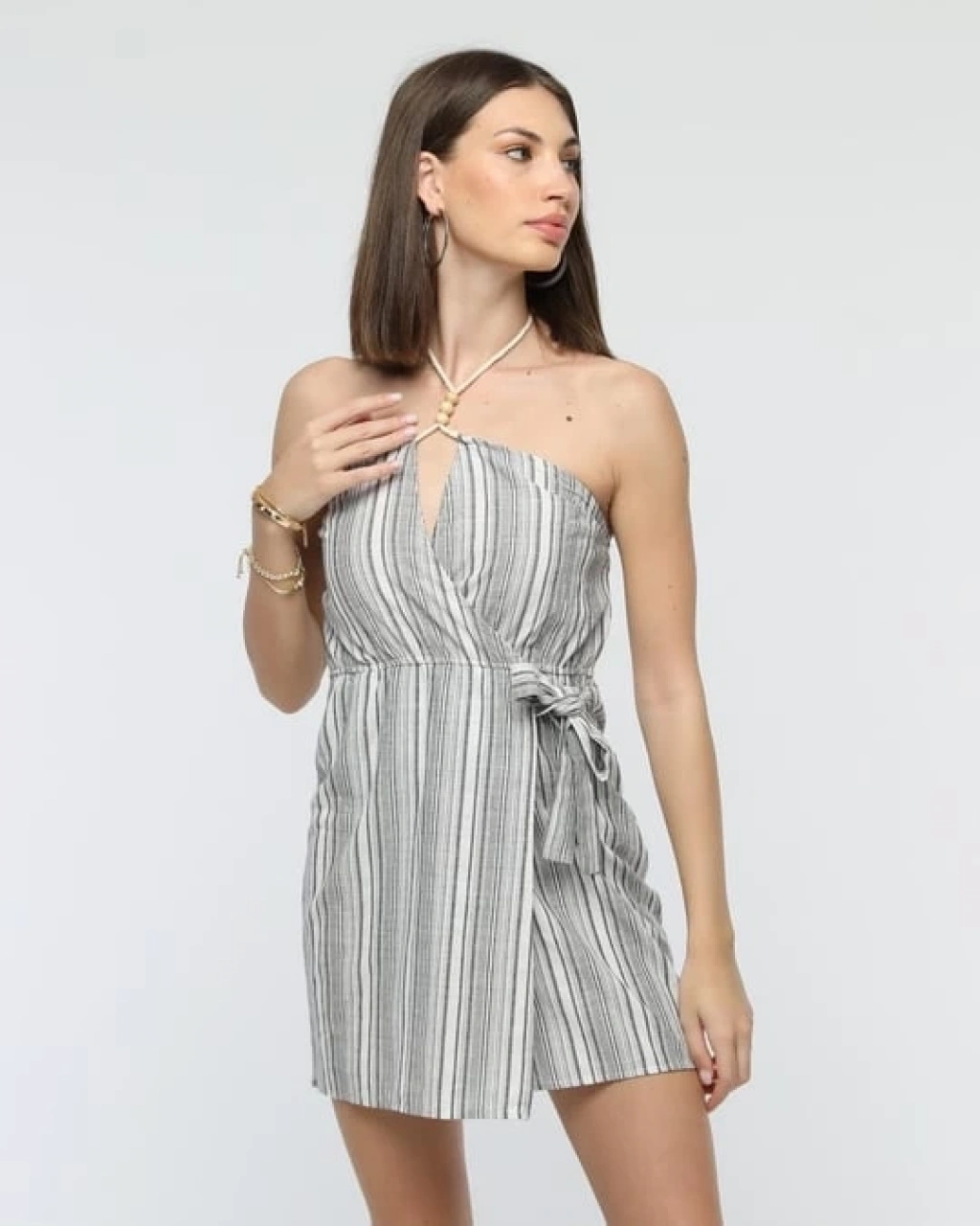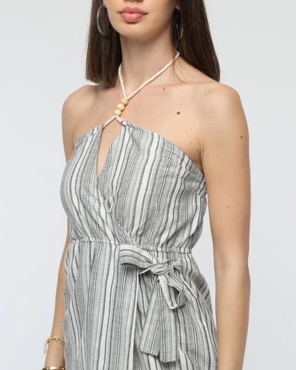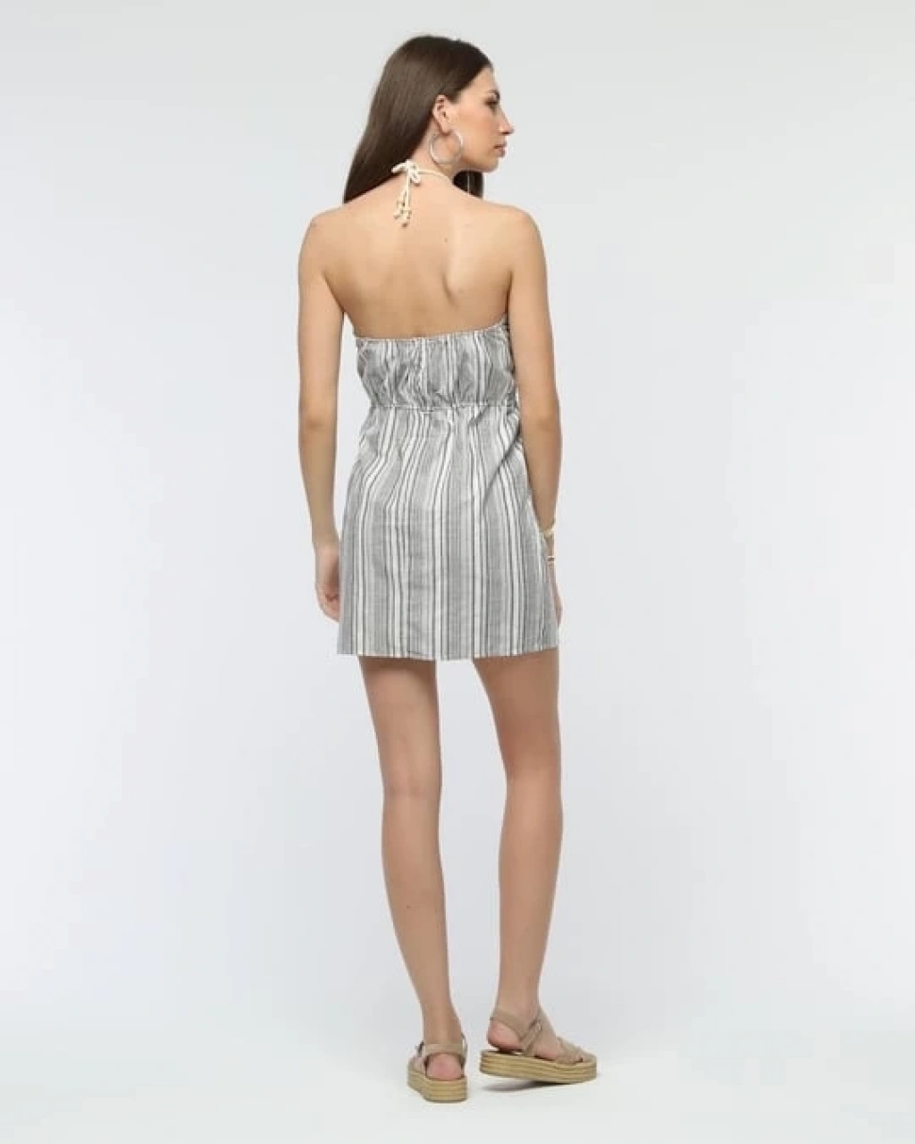 Askılı ch kumaş düğmeli elbise gribeyaz h265007