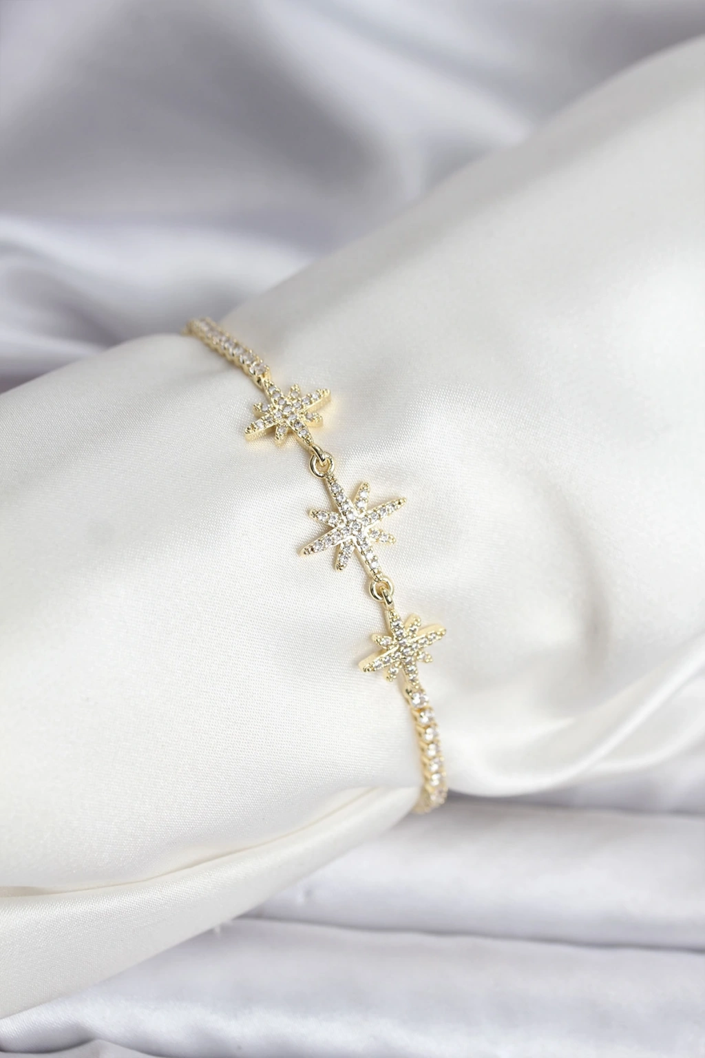 Kutup Yıldızı Model Zirkon Taşlı Gold Renk Su Yolu Kadın Bileklik