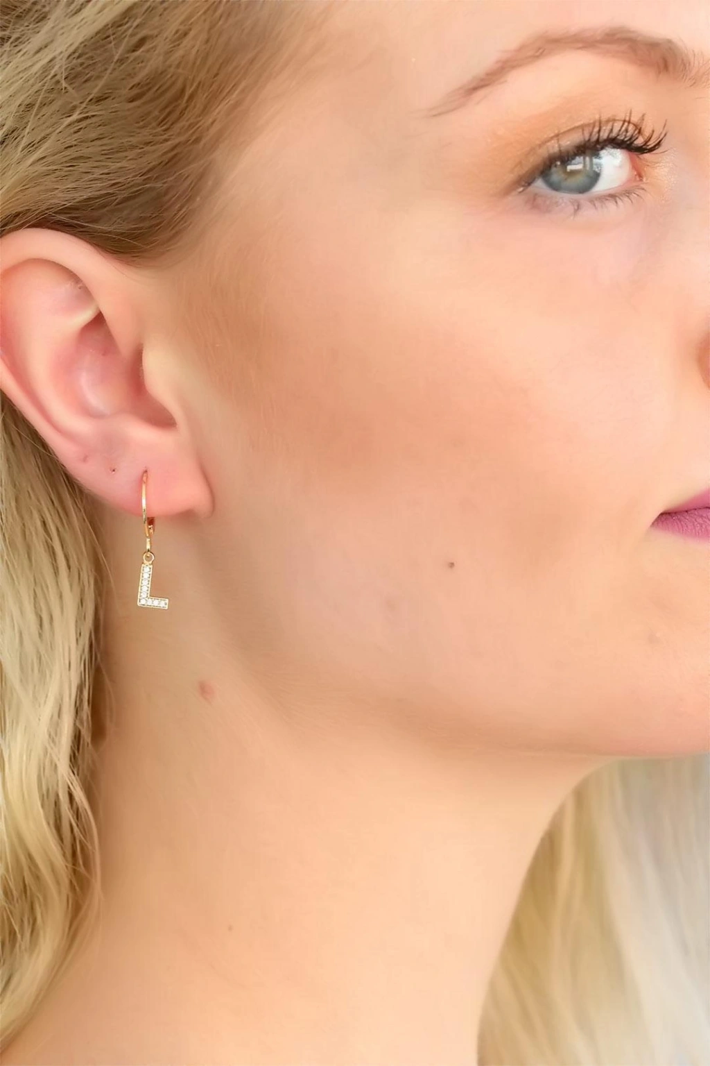 Gold Renk Zirkon Taşlı L Harf Bayan Küpe