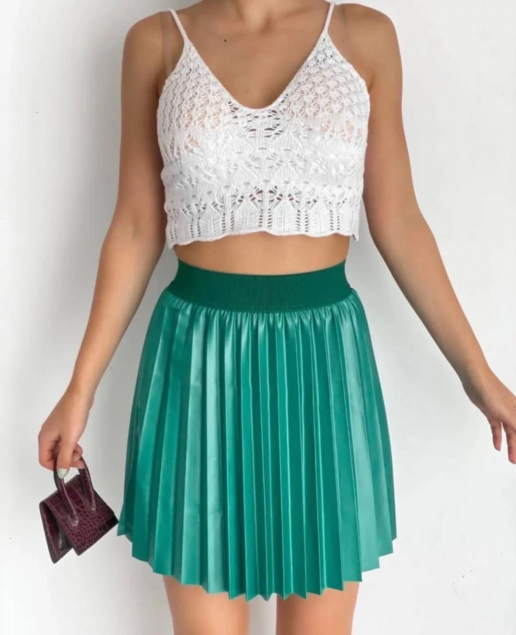 Cep detaylı oval kapaklı deri etek yeşil h240048
