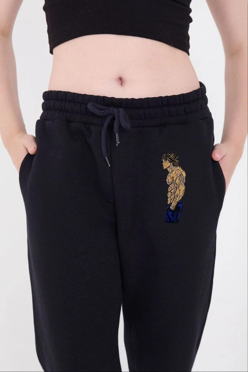 Osy Modal Yumuşak Dokulu Kumaş Nakış işlemeli Rahat Bol Paça Eşofman Pantalon - Siyah