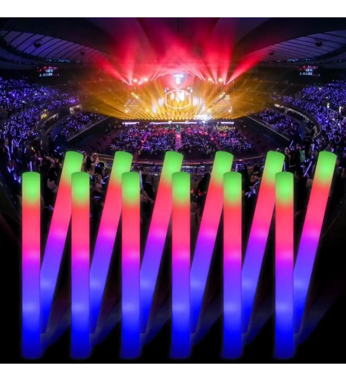 Led Işıklı 3 Modlu Kauçuk Işıklı Sünger Parti Çubuk Sopa - 46 cm (6’lı Paket)