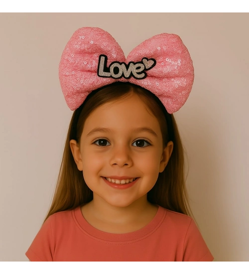 LED Işıklı Love Yazılı Fuşya Fiyonk Taç – Kız Çocuk Parti Tacı