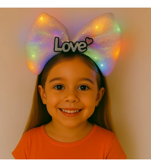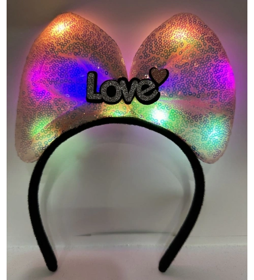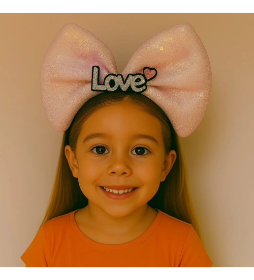 LED Işıklı Love Yazılı Pembe Fiyonk Taç – Kız Çocuk Parti Tacı