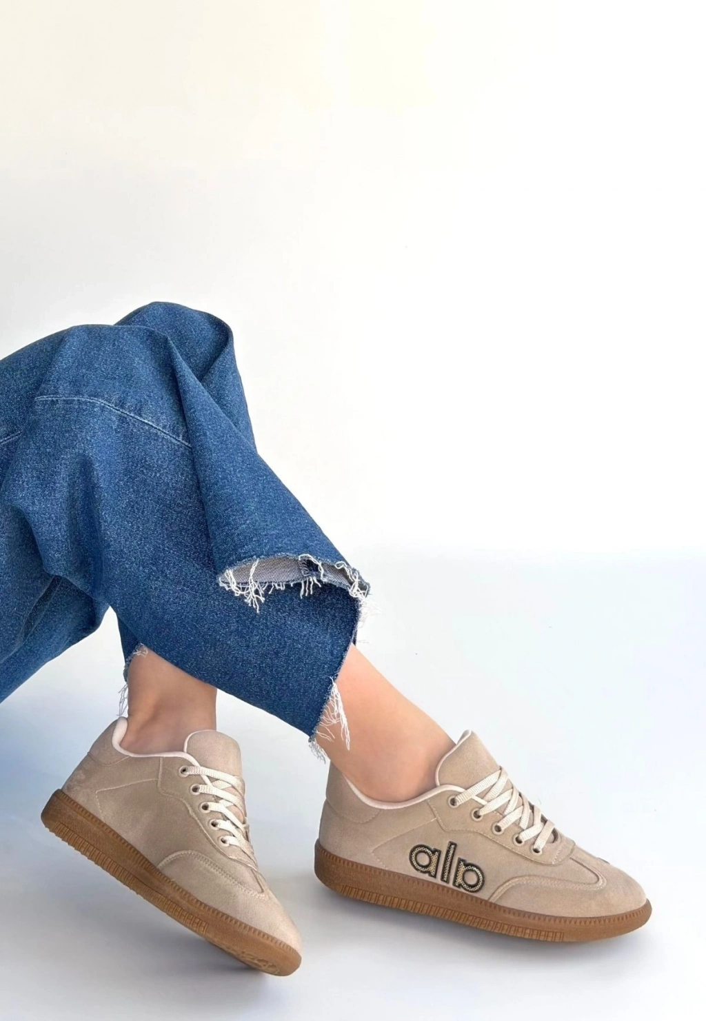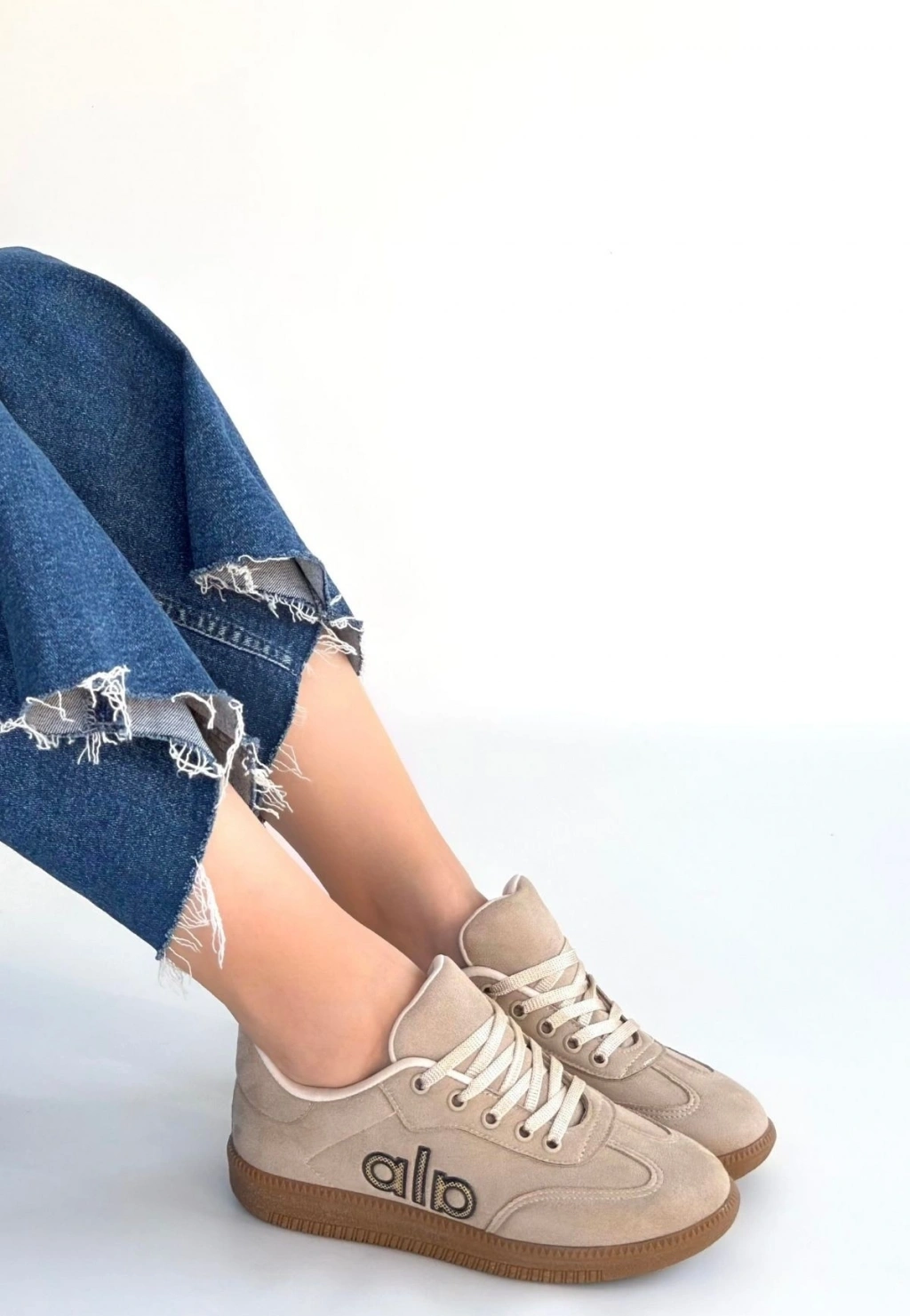 Geja Bej Cilt Bağcıklı Spor Ayakkabı