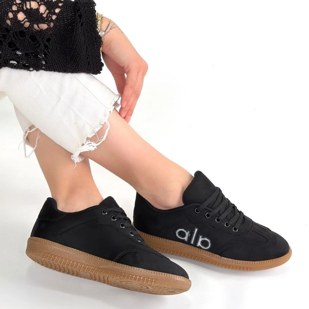Dalen Siyah Keten Bağcıklı Spor Ayakkabı