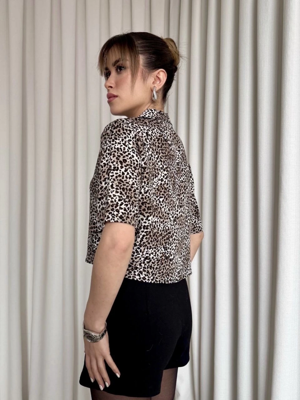 Çift renkli kısa gömlek vizonbeyaz s4021