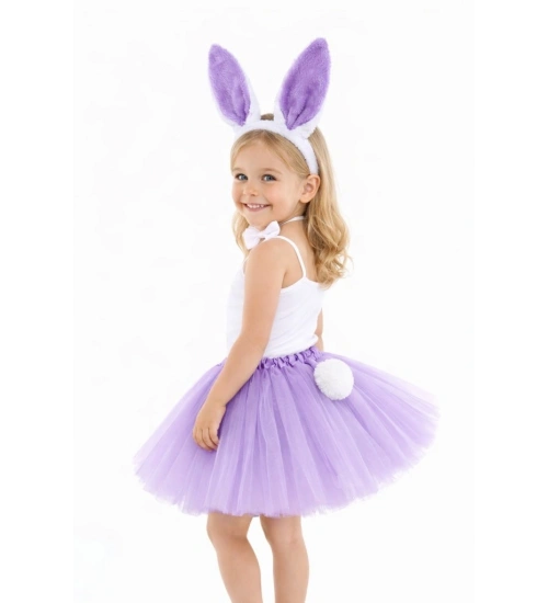 Lila Mor Tavşan Kostüm Seti Kız Çocuk – Tütü Etekli 4 Parça