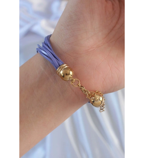 Lila Renk Zirkon Taşlı İpli Çoklu Bileklik