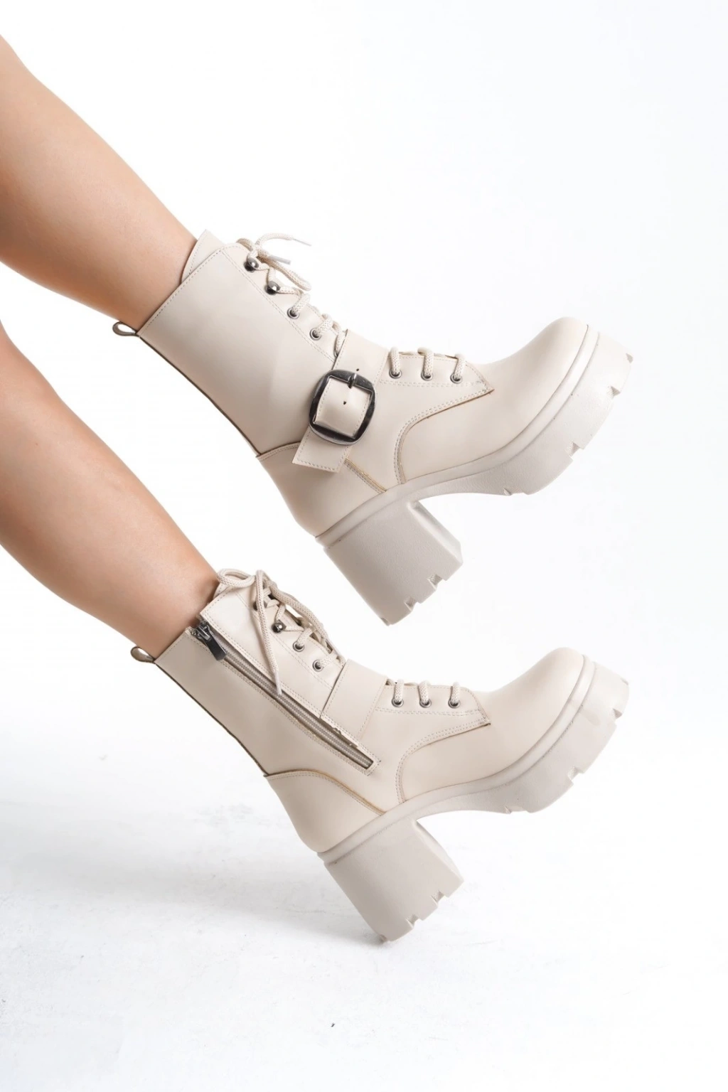 Jones Bej Cilt Bağcıklı Topuklu Bot