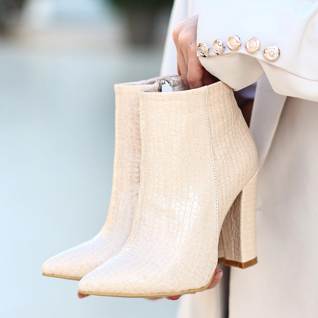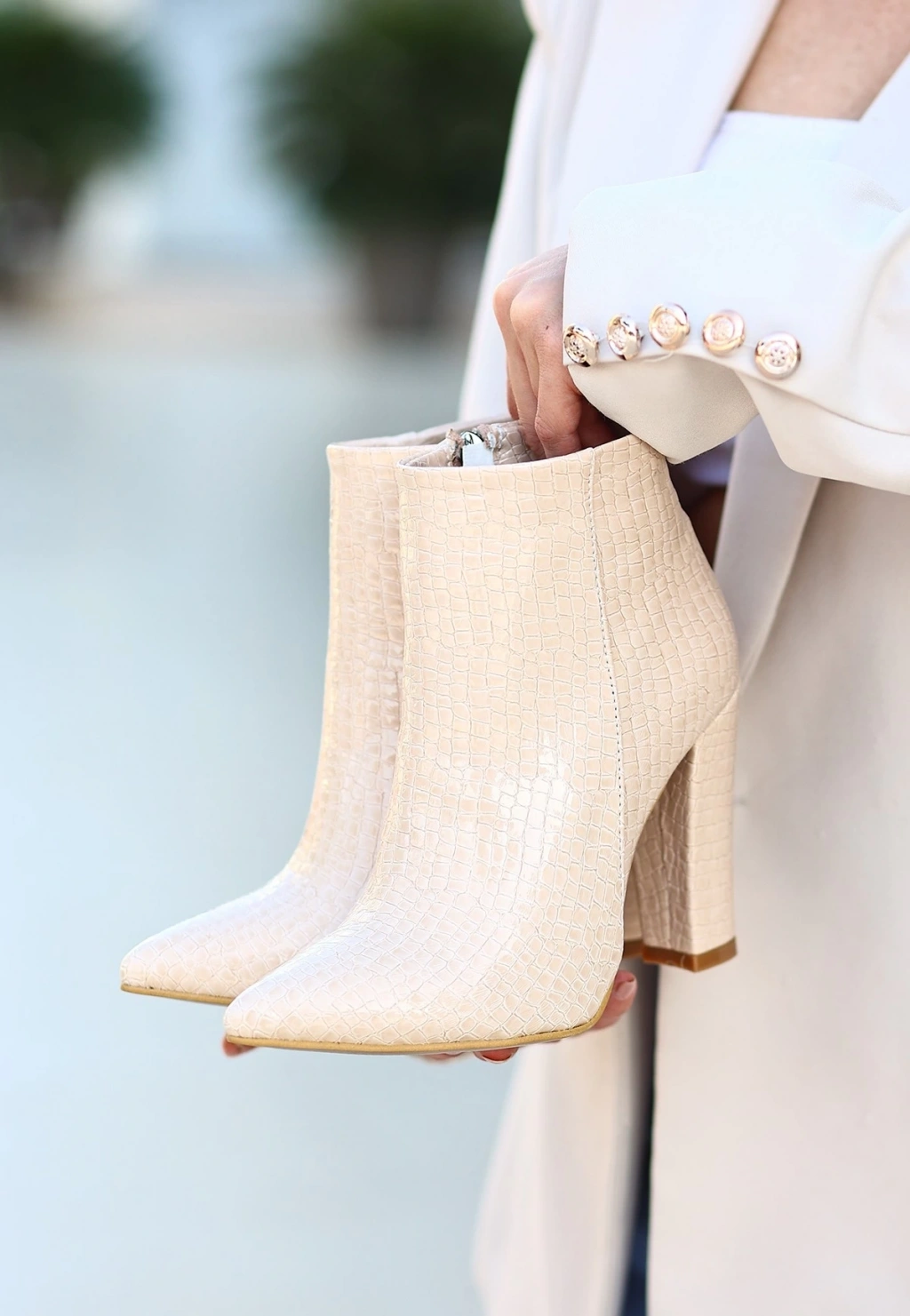Jones Bej Cilt Bağcıklı Topuklu Bot