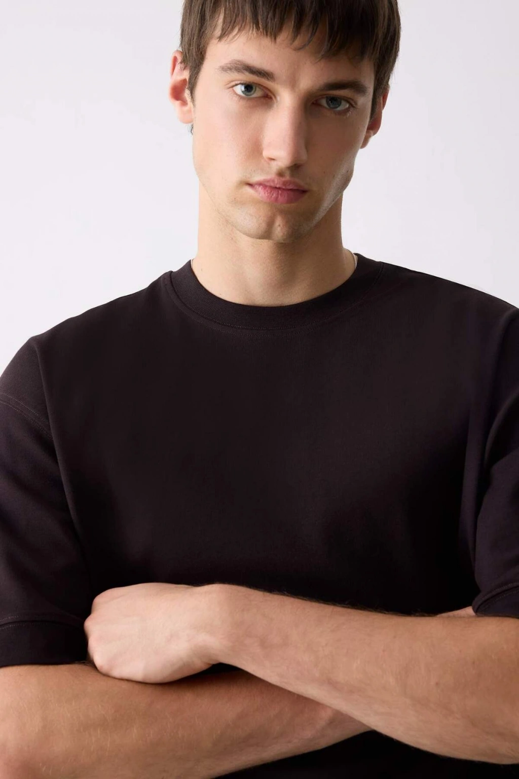 Relax Fit Bisiklet Yaka Basic Düz Kısa Kollu Siyah Tişört