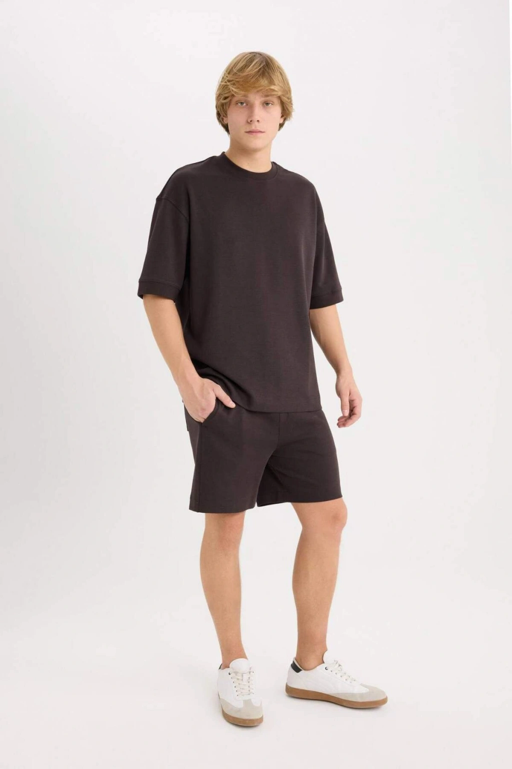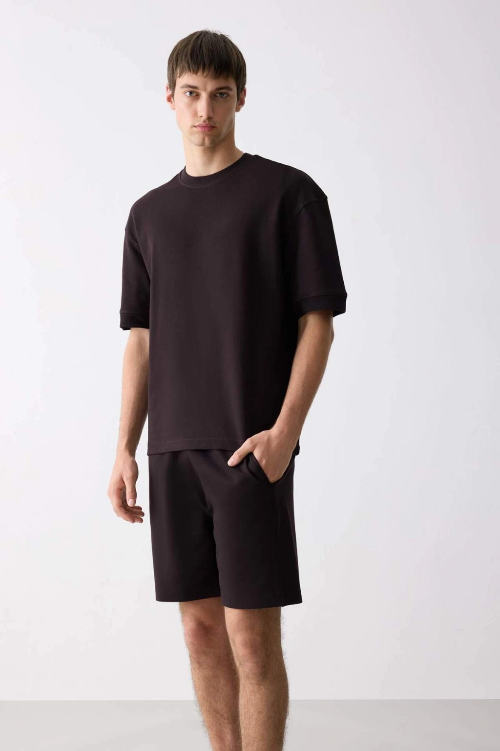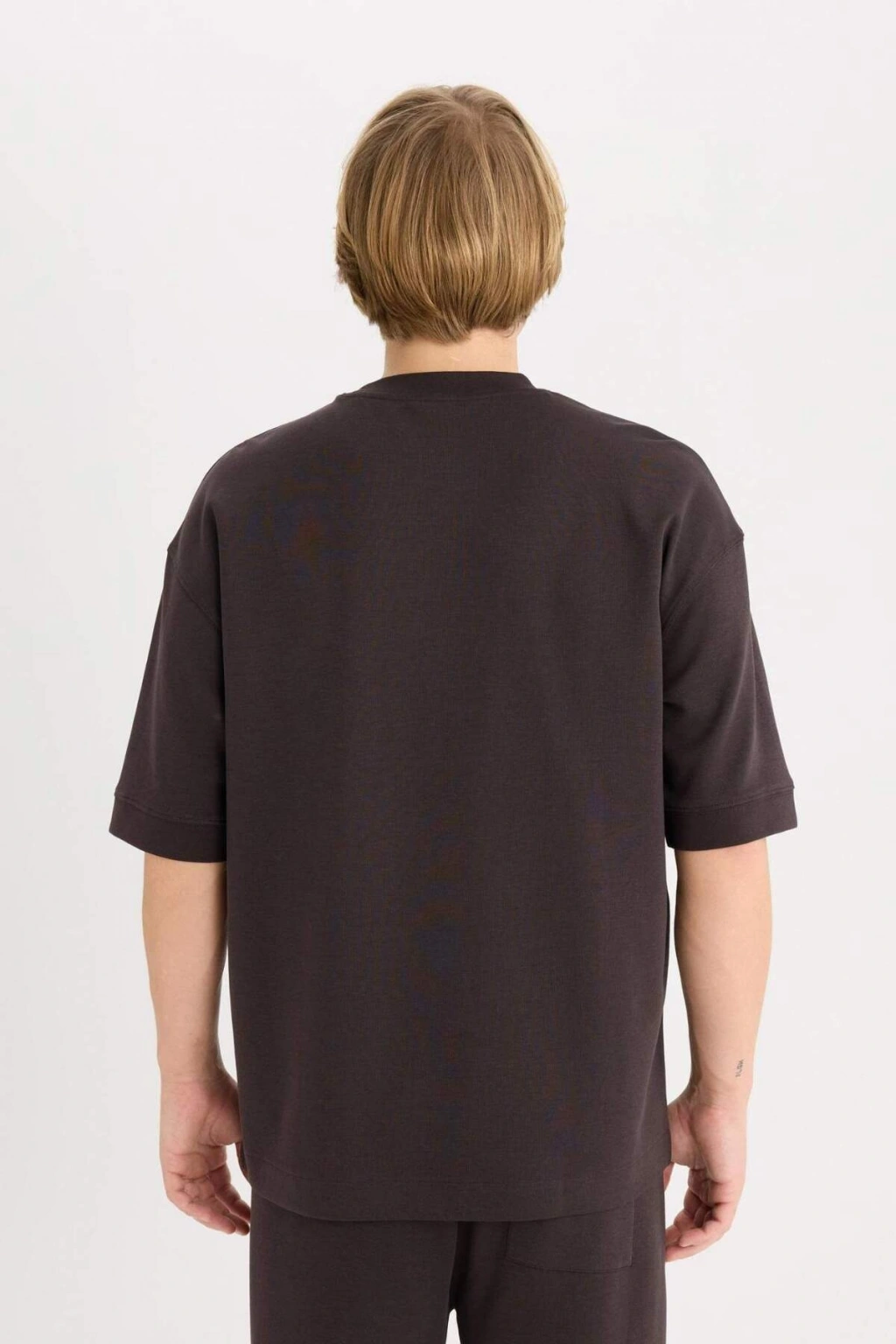 Loose Fit Bisiklet Yaka Kısa Kollu Ağır Kumaş Basic Düz Tişört B4844AX25SP