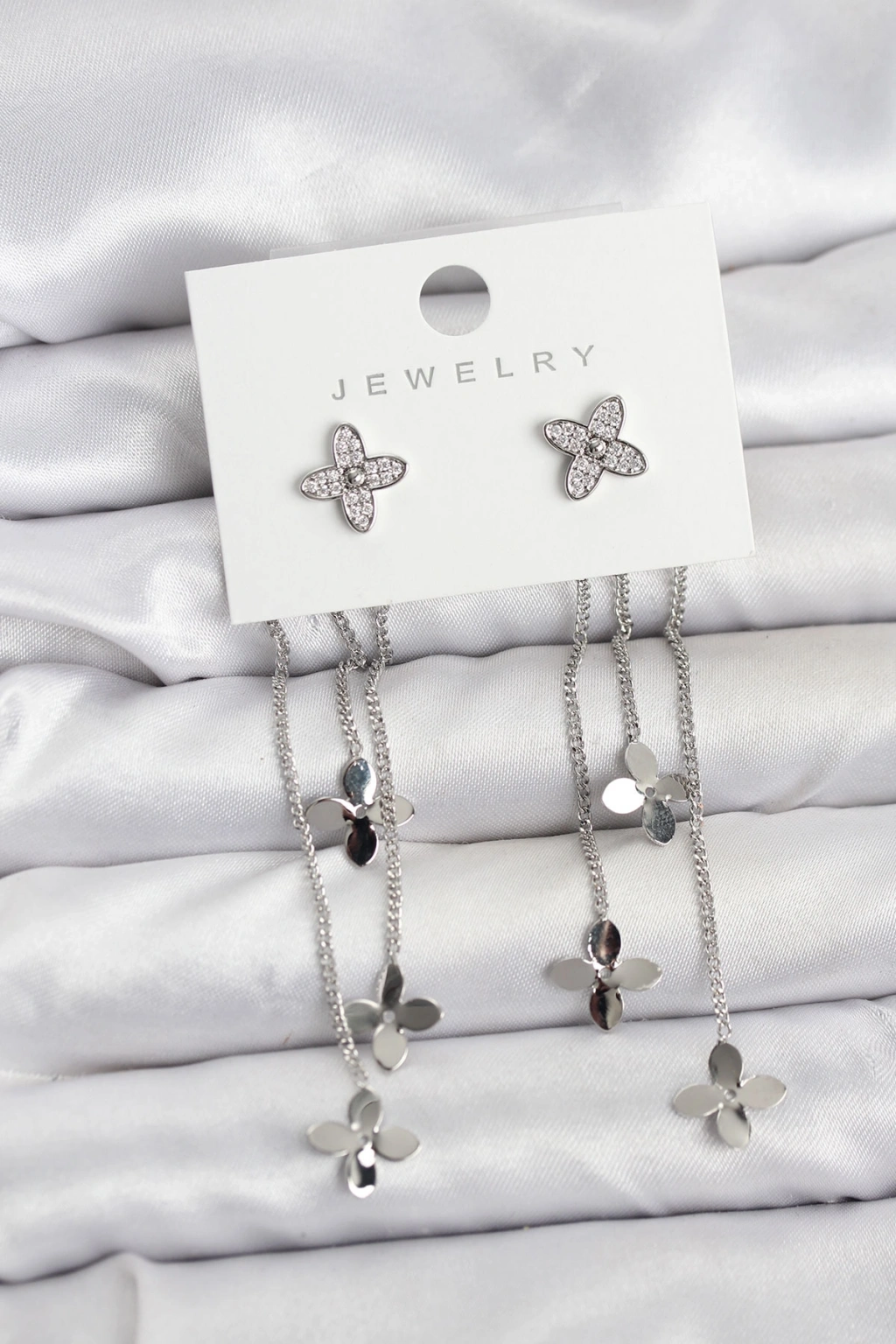 Lotus Model Gümüş Renk Pirinç Sallantılı Kadın Küpe