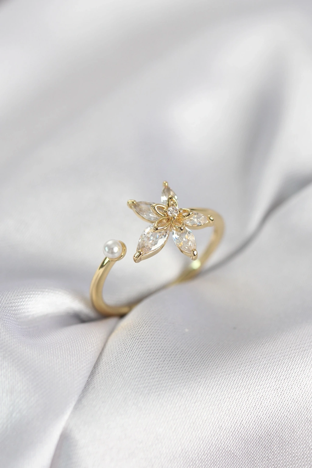 Lotus Model Zirkon Taşlı Gold Renk Kadın Yüzük