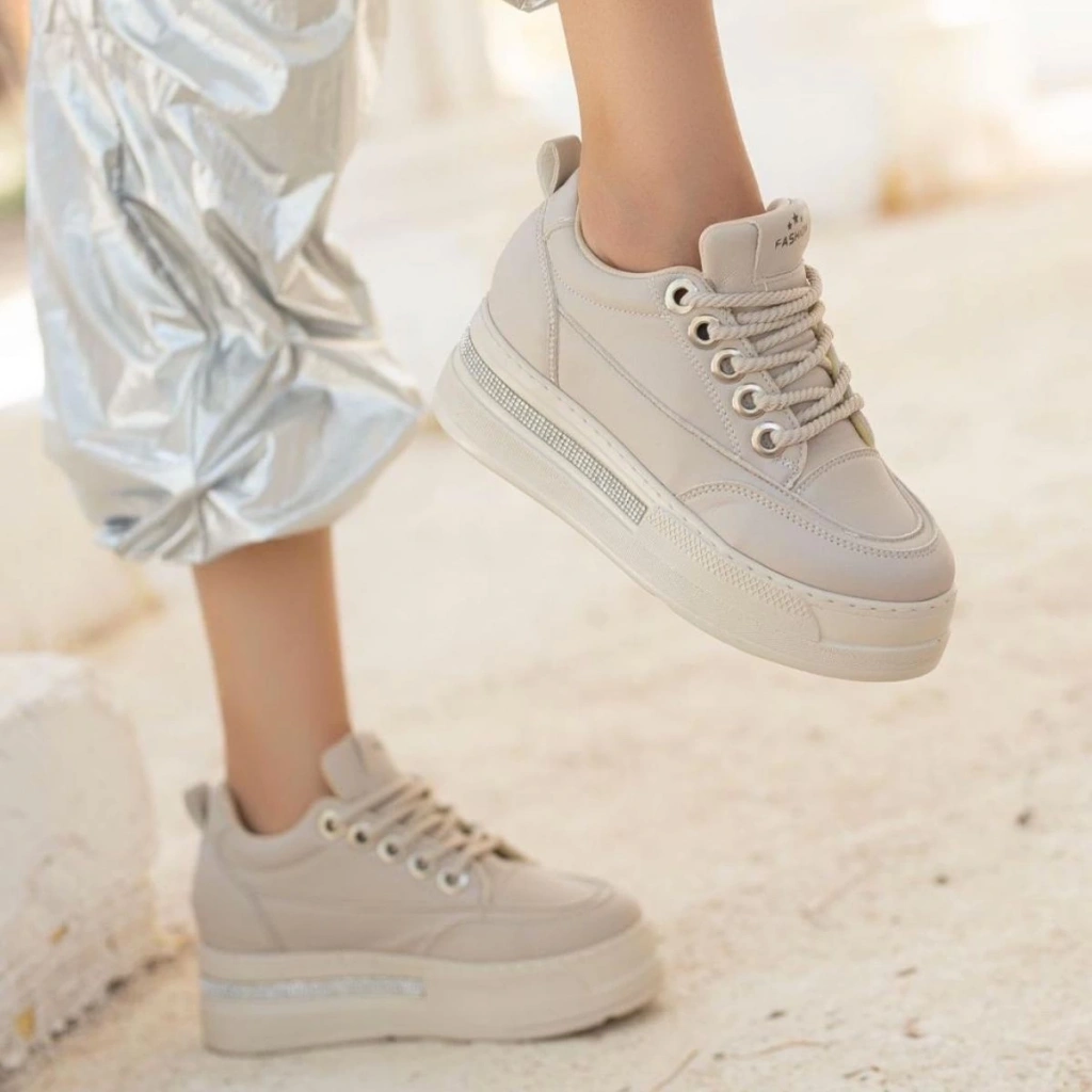 Lulu Bej Cilt Bağcıklı Spor Ayakkabı