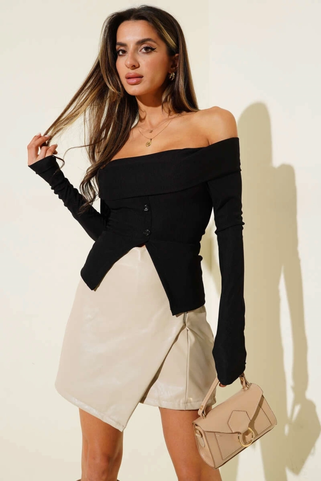 • Madonna Yaka Düğmeli Bluz siyah t4329