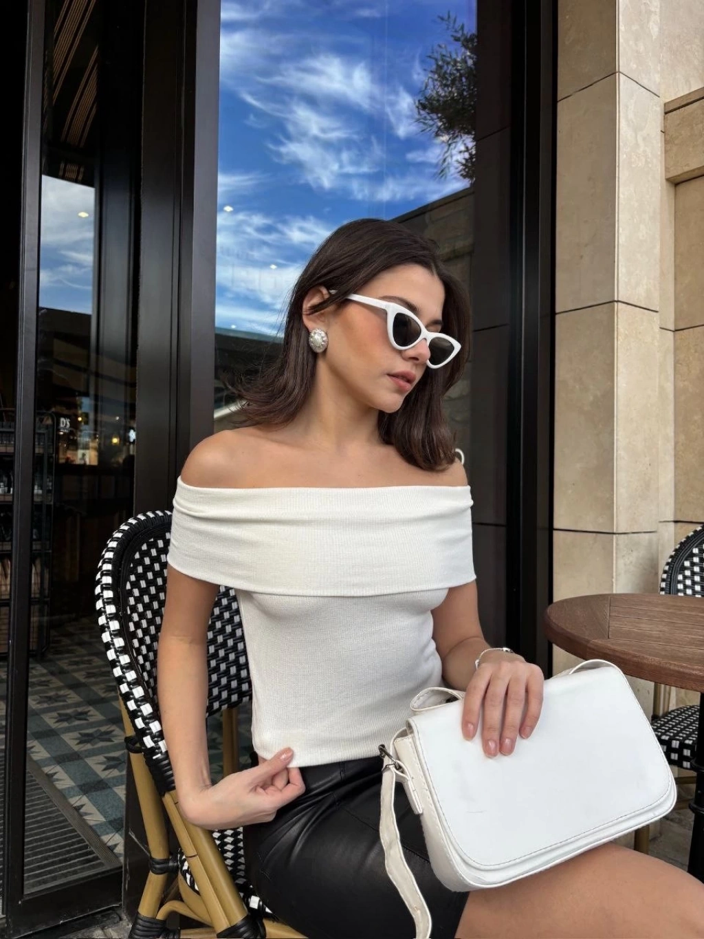 Kare yaka garni detay ispanyol kol bluz beyaz a3105